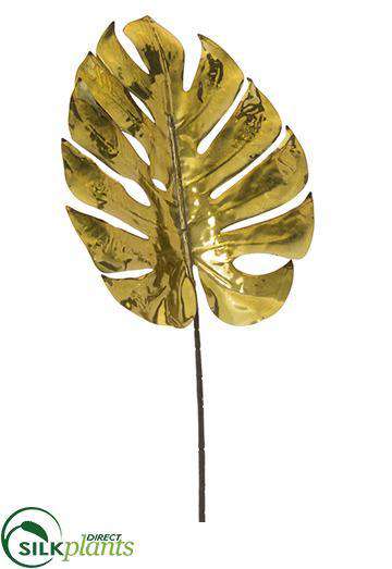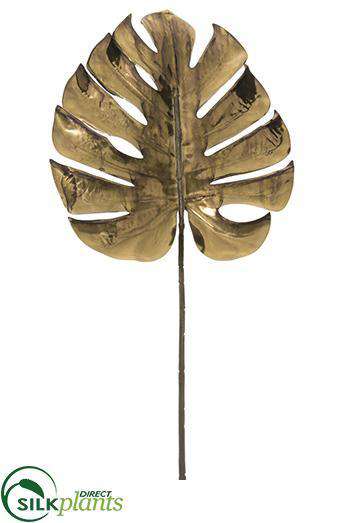 Silk Plants Direct Metallic Monstera Leaf Spray - Gold Antique - Pack of 12
