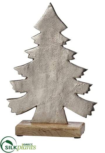 Silk Plants Direct Aluminum Christmas Tree With Wood Base - Silver - Pack of 2