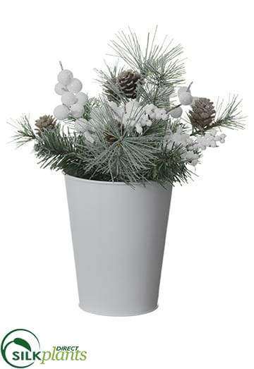 Silk Plants Direct Berry, Cone, Pine Arrangement - White Gray - Pack of 6