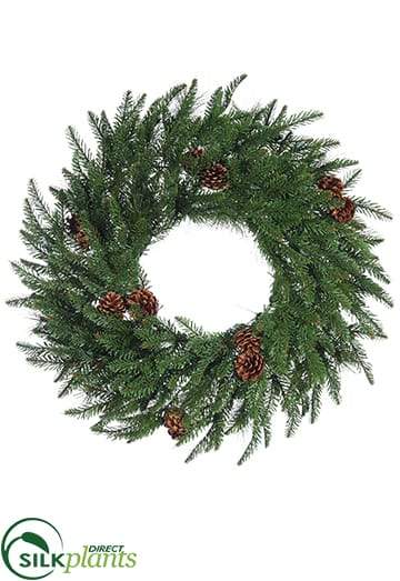 Looking for elements that will make your holiday display more charming and appealing? Look no further than this artificial Douglas Wreath With Pine Cone. Holiday décor accessories which will accentuate your space and make it more exciting, our silk Douglas Wreath With Pine Cone will give you a highly chic and welcoming space without any hassles. Our faux Douglas Wreath With Pine Cone measures 24" tall, comes in a delightful Green color and is available in a pack of 6. They are crafted from high quality material in an elegant finish which gives them a highly realistic look and feel. Just bring our Douglas Wreath With Pine Cone home and be prepared for a luxurious, premium setting.