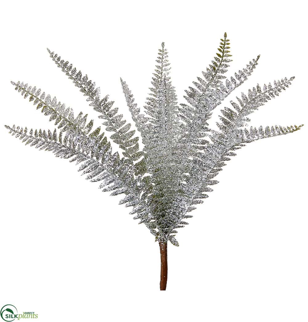 Silk Plants Direct Glittered Fern Bush - Silver - Pack of 6