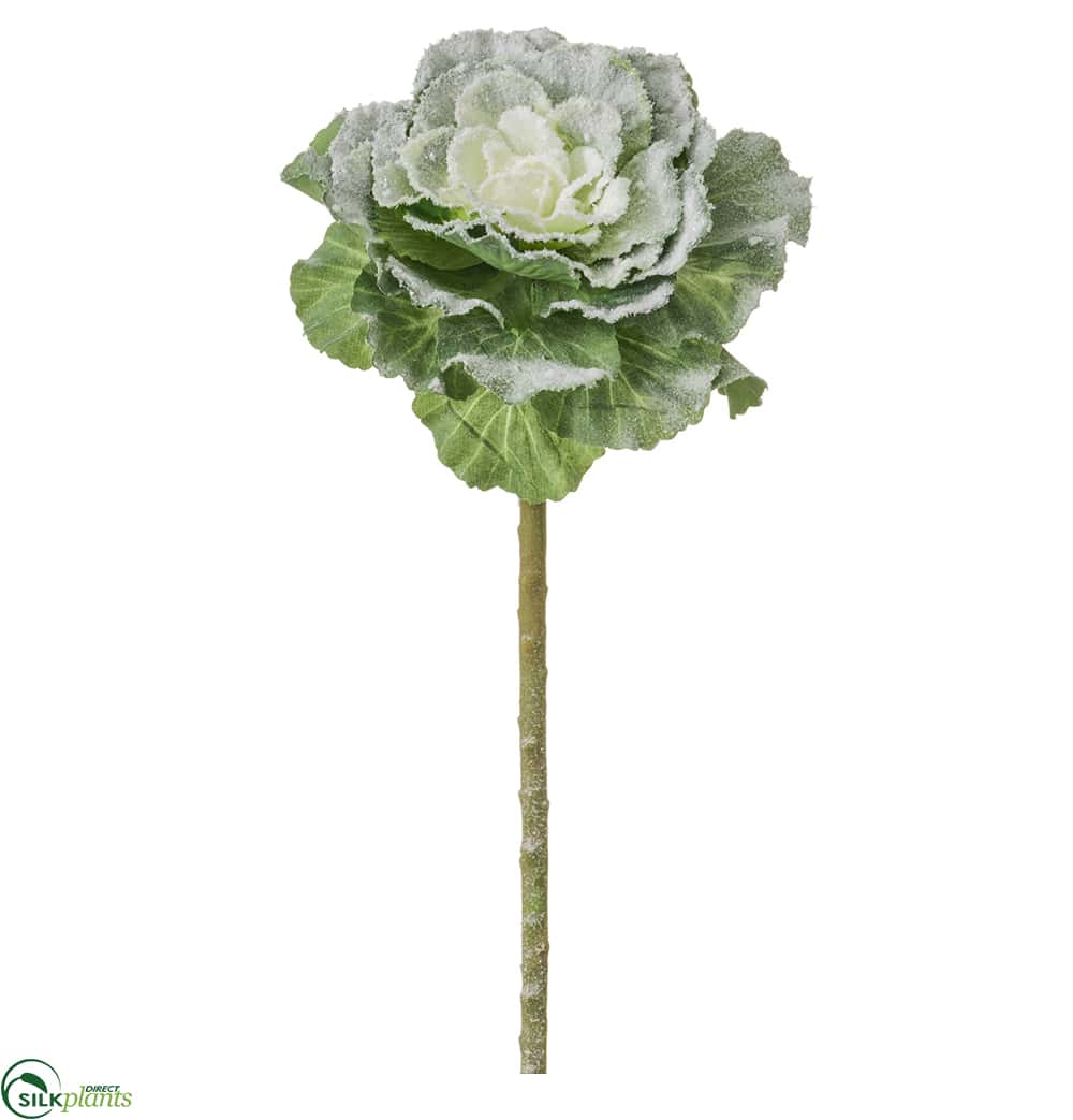 Silk Plants Direct Snowed Cabbage Spray - Green Snow - Pack of 12