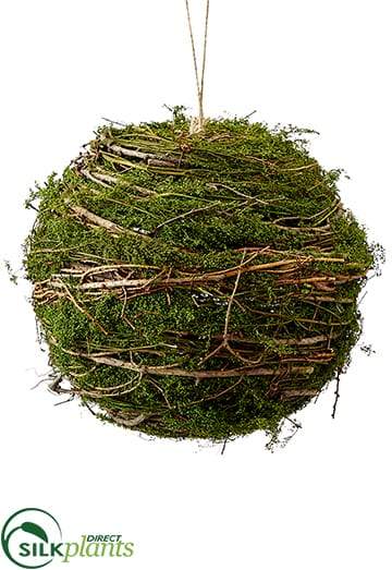 Silk Plants Direct Twig Ball Ornament With Moss - Brown - Pack of 8